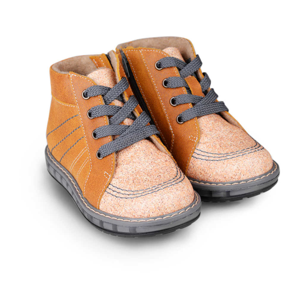 Упругая, умеренно-эластичная подошва, имеющая перекат позволяющий повторить естественное движение стопы при ходьбе для правильного распределения нагрузки на опорно-двигательный аппарат ребенка.