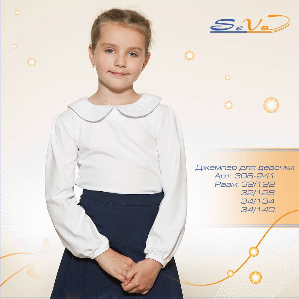 Длинный пышный рукав, отложной округлый воротник, застежка на пуговицу по спинке
