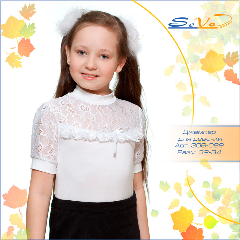 Короткий рукав-фонарик, воротник-стойка (рукава и верхняя часть полочки -- кружевные)