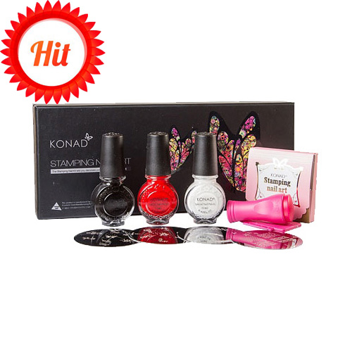 3 лака для стемпинга Konad в объеме 11 мл: Red (красный), White (белый) и Black (черный).