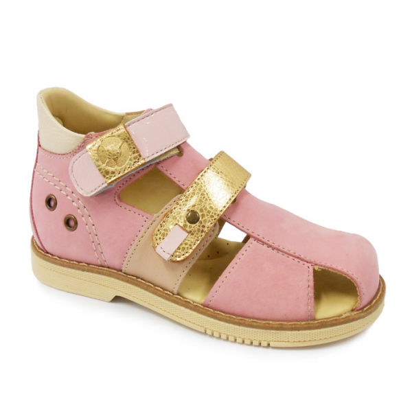 Сандалии для ежедневной профилактики плоскостопия. Широкий, устойчивый каблук специальной конфигурации - каблук Томаса. Каблук продлен с внутренней стороны до середины стопы, чтобы исключить вращение или заваливание стопы вовнутрь, так называемая косолапость, или вальгусная деформация. Многослойная, анатомическая стелька со сводоподдерживающим элементом для правильного формирования стопы. Жесткий фиксирующий задник с удлиненным крылом надежно стабилизирует голеностопный сустав во время ходьбы. Упругая, умеренно-эластичная подошва, имеющая перекат позволяющий повторить естественное движение стопы при ходьбе для правильного распределения нагрузки на опорно-двигательный аппарат ребенка. Подкладка из натуральной кожи теленка без швов. Кожа теленка обладает мягкостью и природной способностью пропускать воздух для создания оптимального температурного режима, нога не потеет. Отсутствие швов на подкладке обеспечивает дополнительный комфорт и предотвращает натирание.