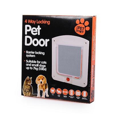Имеется два вида двери: коричневая и белая. Дверь имеет размеры отверстия 150х155 мм. Дверь для кошки подойдет как для межкомнатных дверей, так и в ванную. Подходит для цельных и полых дверей. Подойдет для кошек и небольших собак весом до 7 кг. Имеет 4 положения: полностью закрыт, полностью открыт, только вход, только выход. В комплект поставки входят: две пластмассовые части двери, шурупы с гайками и заглушки, цветная коробка. Подробная инструкция по установке нарисована на задней части коробки.
