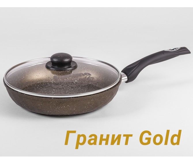 Сковорода 24см АП Гранит gold с несъемной ручкой и стекл. Крышкой арт, С24805 1184руб