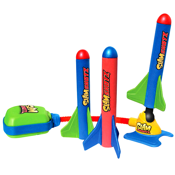 Думаете, что настольные игры монотонны и скучны? Slam Shotz меняют это представление! Только представьте – ракеты взлетают на высоту до 20 м! Это отличный способ немного отвлечься от рабочего процесса, но Slam Shotz найдут место и в самых обычных детских играх – с ним можно устроить веселое соревнование или, например, поиграть в космопорт. Не бойтесь, что ребенок разобьет стекло в серванте или поранится – ракеты созданы для безопасных развлечений, из мягкого и легкого материала.