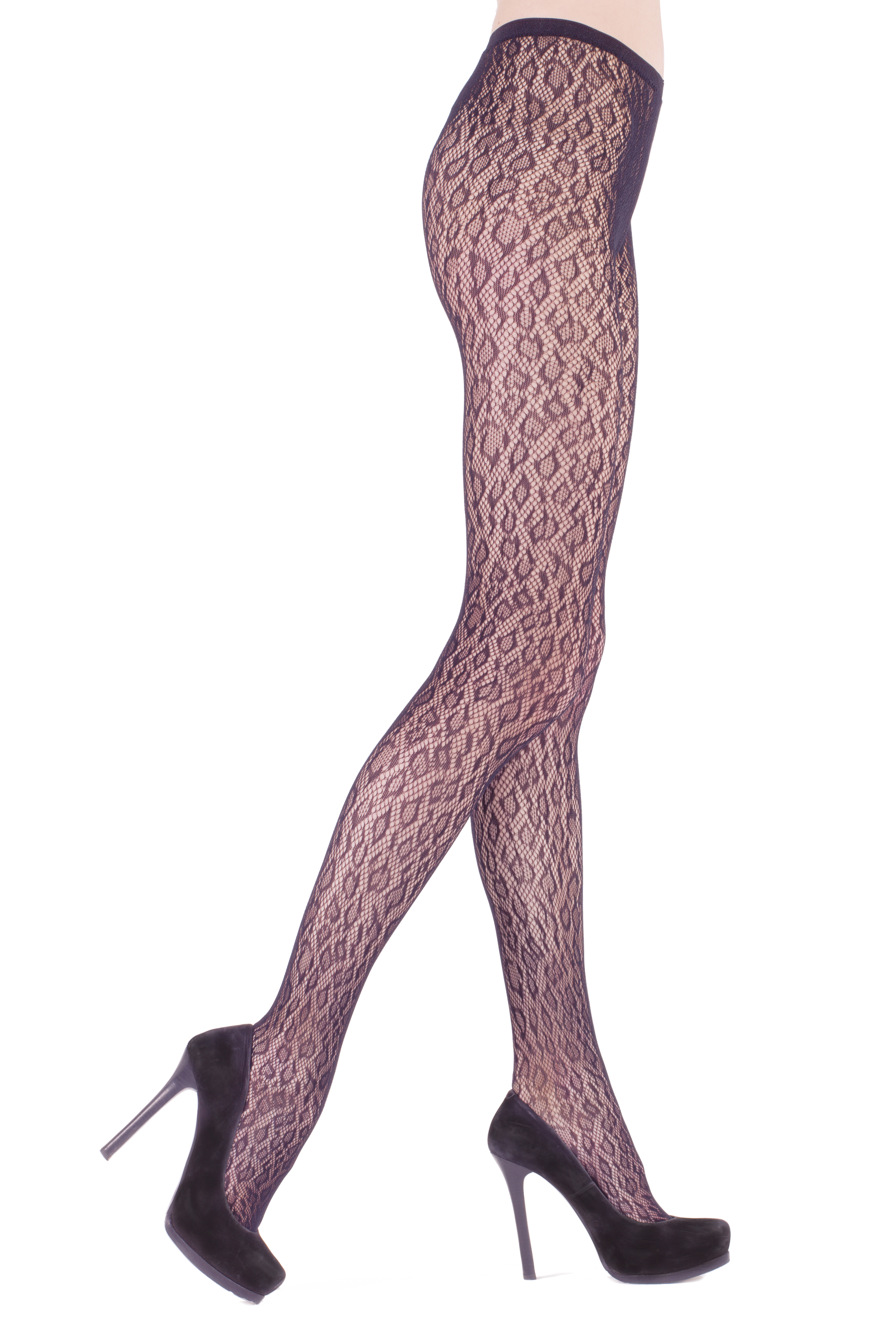 Фантазийные колготки из полиамида. Ажурное бесшовное плетение с узором "леопард".