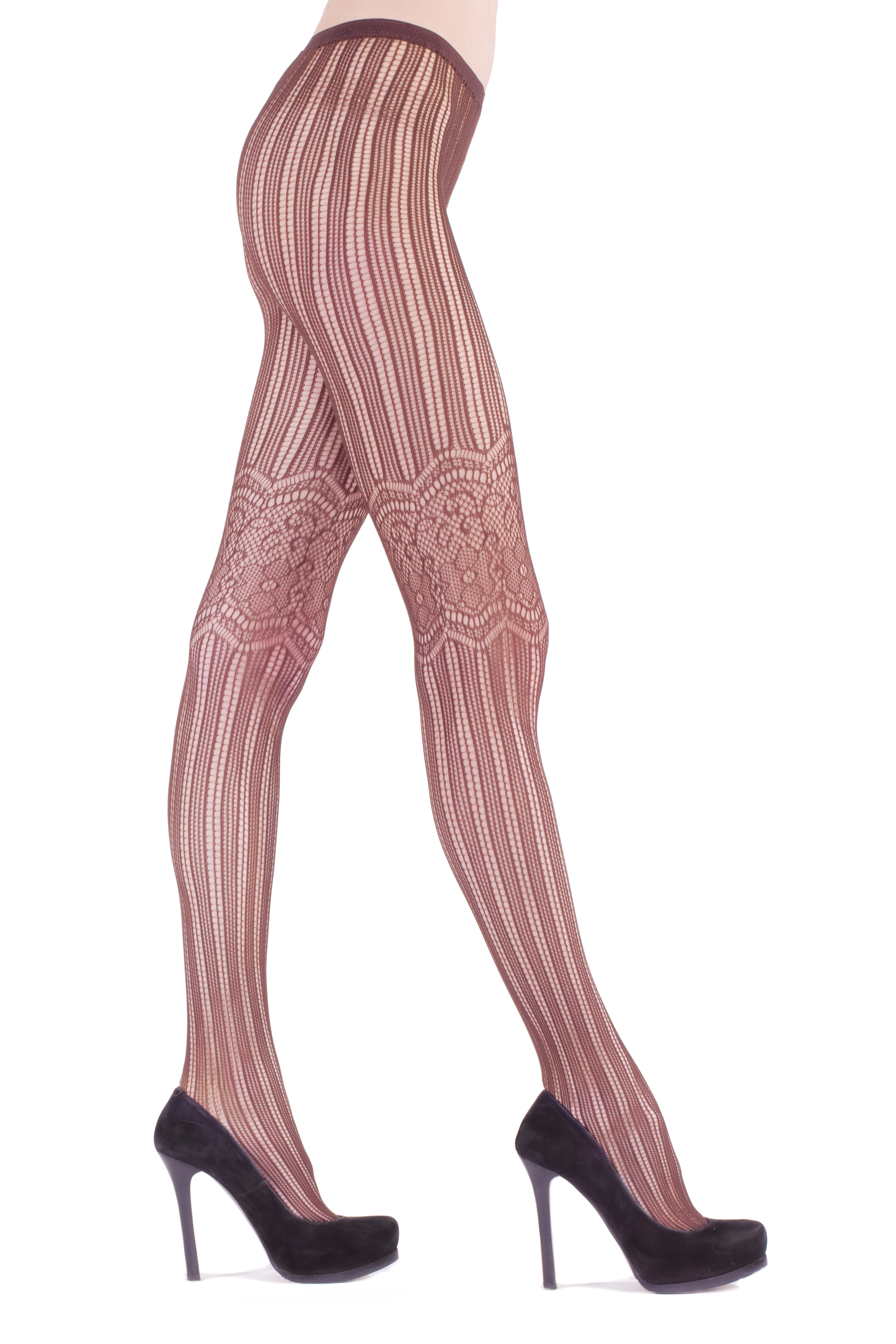 Фантазийные колготки из полиамида. Ажурное бесшовное плетение с комбинированным цветочным узором и полоской.