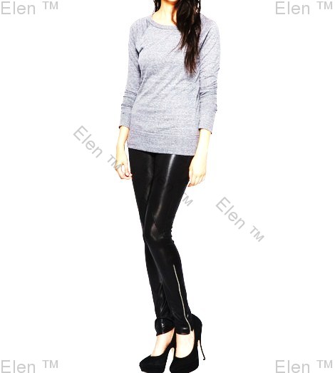 Стильные леггинсы под кожу с молниями 35 см. сбоку