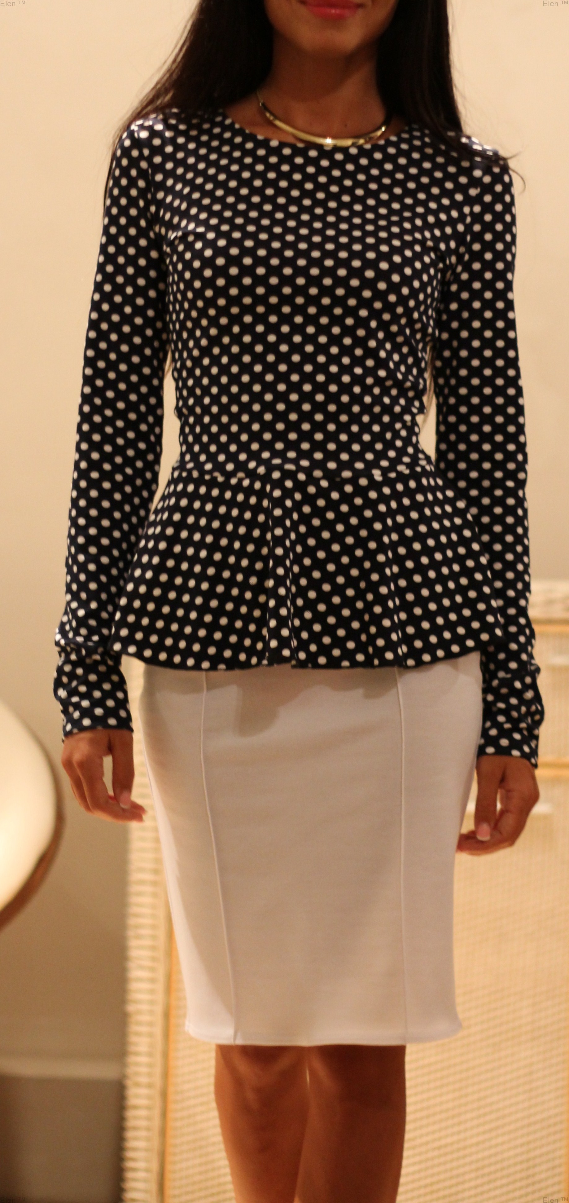 Стильный трикотажный топ с баской в горох.