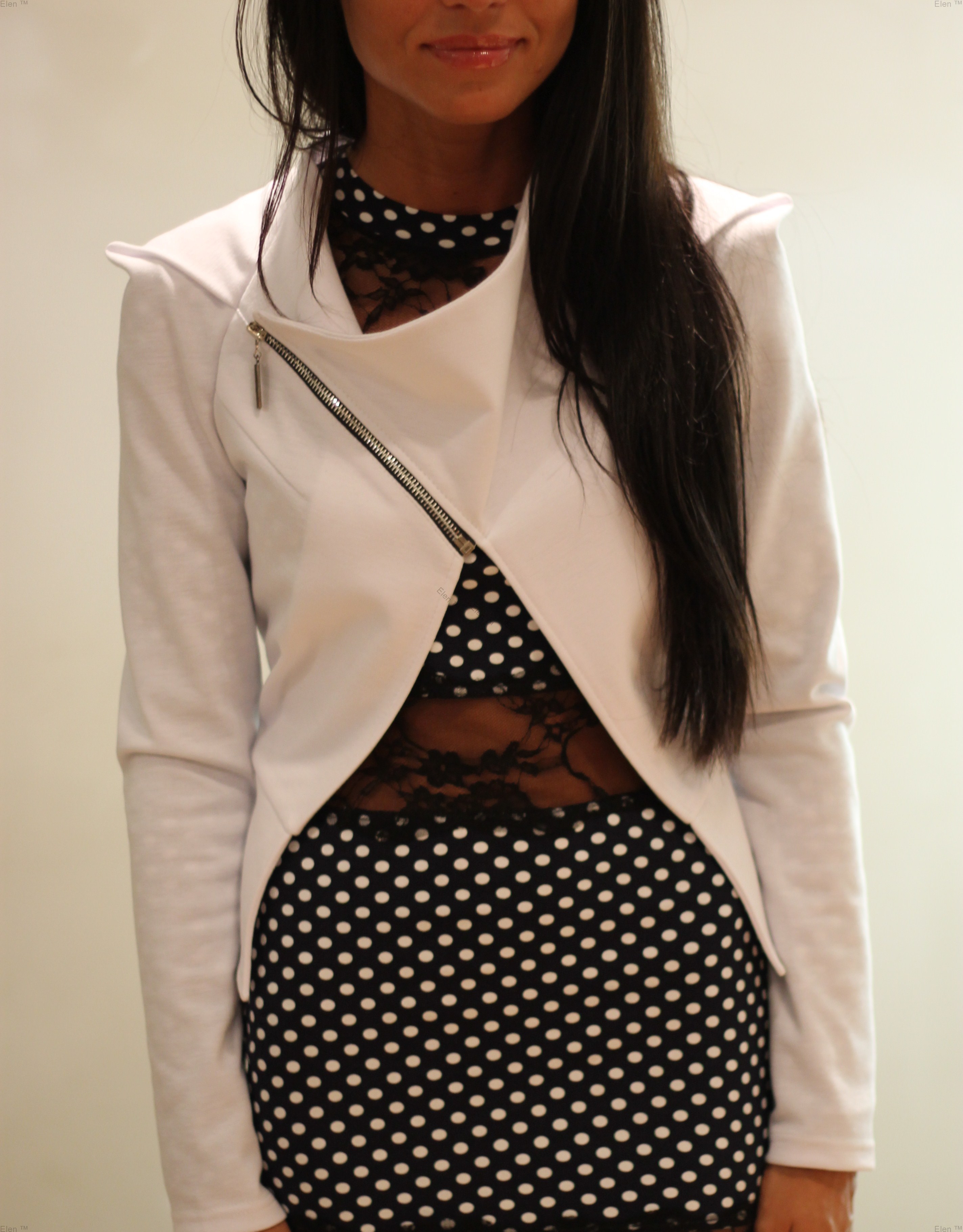 Стильный трикотажный пиджак. Спереди- короткий под грудь, сзади- под поясницу.