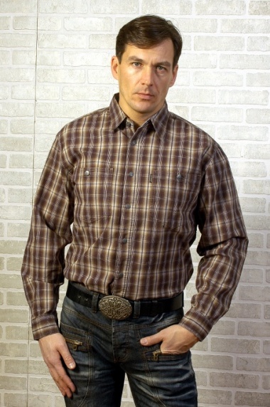 Классическая рубашка свободного кроя в сдержанной цветовой гамме придает образу выдержанность. Более светлые линии клетки зрительно «вытягивают» силуэт, делая его более подтянутым. Верхняя застежка на пуговицу, воротник «стойка» и обычные манжеты довершают образ, придавая модели завершенность.