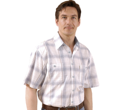 Рубашка в крупную клетку, акцент сделан на вертикальных направляющих рисунка, это структурирует общее впечатление силуэта, позволяет сделать акцент на мужественных формах торса, избегая ненужной детализации недостатков фигуры. Подойдет для неформальных встреч, ежедневной носки.