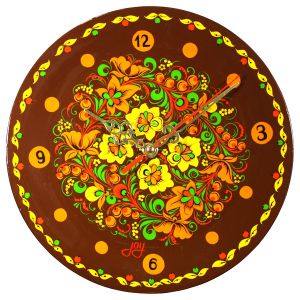 Часы разрисованы вручную мастерами Семёновской хохломы.
