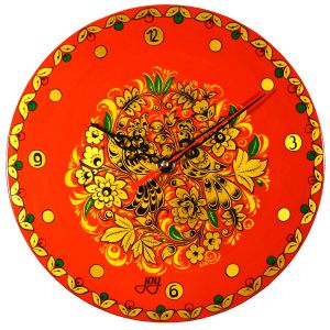 Часы разрисованы вручную мастерами Семёновской хохломы.
