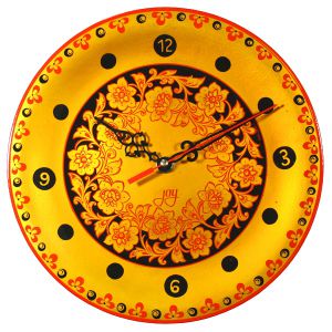 Часы разрисованы вручную мастерами Семёновской хохломы.