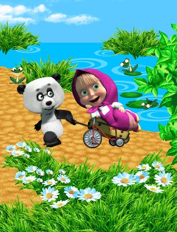 Полотенце махровое 110*140 "Непоседа" Маша и Медведь мод. Панда в гостях